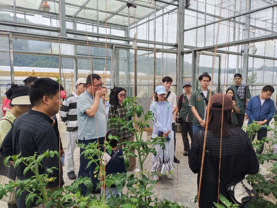 6月15日,贵州省高原特色蔬菜产业体系岗位专家、贵州省蔬菜专班成员、sunbet申搏官方网站蔬菜产业研究院徐秀红副教授和李经纬副教授、黔南州功能试验站岗位专家、黔南州农业农村局王仁忠主任、农艺师汪立宇,联合贵州省农业农村厅果树蔬菜工作站站长张绍刚和农艺师毛妃凤,sunbet申搏官方网站农学院王勇教授、赵志博教授、王晖教授和龙里县农业农村局领导与专家赴龙里县湾滩河省级农业科技示范展示基地协同开展“一带一路”国际化智慧农业人才实践培训和黄瓜高效栽培技术实践教学和技术指导。基地自2012年开始建设以来,共占地3000余亩,其中设施蔬菜栽培面积1200亩,主要种植黄瓜、番茄和豌豆尖等高附加值蔬菜,基地田、园、路、渠、机、电、井、滴管等按高标准农田配置,部分温室实现物联网智慧化管理,实现种植环境全天候监控和机械化、自动化管理。基地蔬菜产品供应全国各大主要蔬菜档口,远销供应粤港澳大湾区。2024年,以圣奇农业公司为实施主体,贵州省高原特色蔬菜产业体系技术支撑,联合龙里县农业农村局共同申请并建设省级农业科技示范展示基地,供全省蔬菜种植技术交流、观摩以及“产学研”深度融合,打造蔬菜绿色高效生产的省级标杆和重点产业人才培养平台。以体系