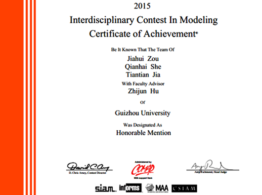 sunbet申搏学子在2015年美国大学生数学建模竞赛中获国际二等奖