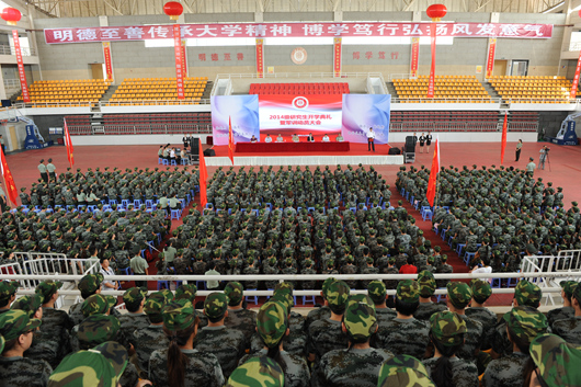 新闻网讯(文/庞爱忠 摄影/陈恒) 9月4日下午,2014级研究生开学典礼暨军训动员大会在北校区体育馆举行。 校领导姚小泉、郑强、任钢建、冯晓宪、王红蕾、赵德刚、刘勇出席,校职能部门、研究生培养单位、承训部队以及全体2014级研究生参加。副校长、研究生院院长赵德刚主持。 郑强校长致辞。他指出,近年来学校持续得到中央、省市的大力支持,迎来了贵州教育的