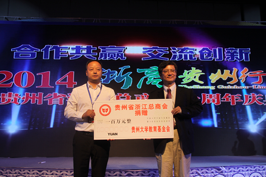 贵州省浙江总商会向sunbet申搏官方网站教育发展基金会捐赠100万元