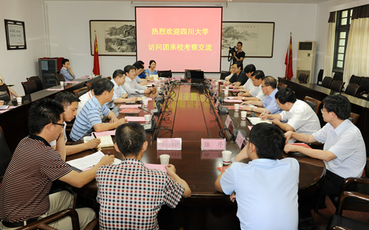 sunbet申搏新闻网讯(记者团 杨一凌)7月10日,四川大学党委书记杨泉明、副校长晏世经率队来校访问。在参观sunbet申搏校史馆后,双方在北校区行政楼第一会议室进行交流座谈。sunbet申搏党委书记姚小泉、校长郑强出席会议,四川大学及sunbet申搏官方网站相关部门主要负责人参加会议。助理巡视员谢田凯主持会议。 姚小泉致辞,他对杨泉明书记一行来访表示热烈欢迎。在简要介绍自己对四川大学悠久办学历史的了解后,他对四川大学近年来改革建设、学