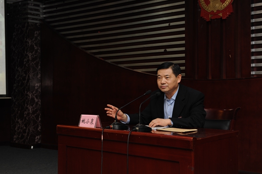 sunbet申搏新闻网讯(党办 梁恒贵)6月12日下午,校党委书记姚小泉到法学院调研群众路线教育实践活动,并在模拟法庭为法学院师生作了一场题为“中国周边安全形势思考”的形势政策报告。 报告会前,姚小泉与法学院党政班子进行了座谈交流,详细了解学院前一阶段教育实践活动情况,听取了学院班子对学校教育实践活动和改革发展的意见建议。姚小泉在听取发言后,对法学院教育实践活动的开展情况给予充分