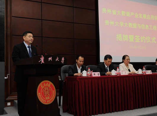 sunbet申搏新闻网讯(记者 唐娟)5月28日下午,贵州省大数据产业发展应用研究院、sunbet申搏官方网站大数据与信息工程学院在sunbet申搏官方网站揭牌。省人大党组书记、副主任龙超云,副省长何力,省政协副主席陈海峰,上海交通大学副校长、中国科学院院士梅宏,贵阳市委副书记、市长刘文新,贵安新区管委会主任马长青等出席揭牌仪式。校党委书记姚小泉主持仪式。 校长郑强介绍了贵州省大数据产业发展应用研究院、sunbet申搏官方网站大数据与信息工程学院的筹