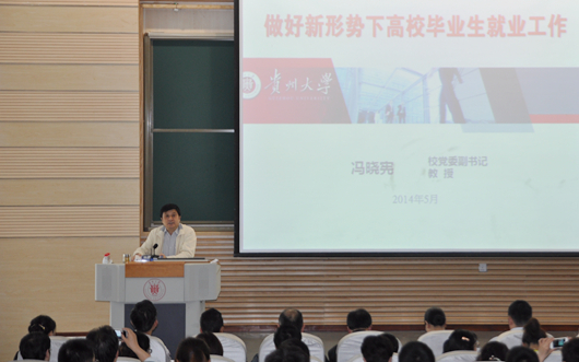 sunbet申搏新闻网讯(招生就业处)5月22日下午,sunbet申搏2014届毕业生就业工作推进会在西校区圆形报告厅举行。校党委副书记冯晓宪出席并做专题讲座,各学院(研究中心、实验室)党委副书记、负责毕业生就业工作的老师、招生就业处全体成员和近300名学生代表参加。推进会由招生就业处处长惠淑林主持。 冯晓宪作题为《做好新形势下高校毕业生就业工作》的专题讲座。他简要回顾了sunbet申搏2013年就业工作的成