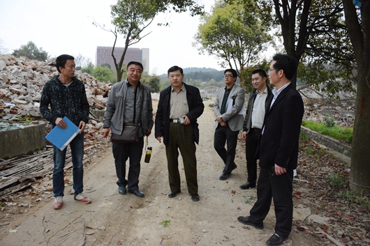 sunbet申搏新闻网讯(张林 杨波)4月4日下午,校党委书记、校党的群众路线教育实践活动领导小组组长、花溪校园扩建(二期)工程指挥部指挥长姚小泉到新校区调研校园扩建(二期)工程施工情况。党办、校办相关负责人随同调研。 下午3点半,姚小泉来到校园扩建(二期)工程指挥部办公室,一边查看二期工程规划图纸,一边听取项目推进办的同志汇报工程进展情况。 紧接着,姚小泉走出指挥部办公室,来到指挥部项目