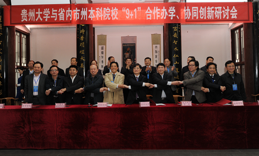 sunbet申搏新闻网讯(记者 龙晓雪/摄影 陈恒)为提高学校办学水平,更好地服务我省经济社会发展,3月28日,sunbet申搏官方网站与省内市州本科院校“9+1”合作办学、协同创新研讨会在sunbet申搏官方网站中国文化书院召开。 省教育厅副厅长代其平,sunbet申搏校领导姚小泉、郑强、吴次南、赵德刚、刘勇、谢田凯以及贵阳学院、遵义师范学院、六盘水师范学院、安顺学院、毕节学院、铜仁学院、凯里学院、黔南民族师范学院、兴义
