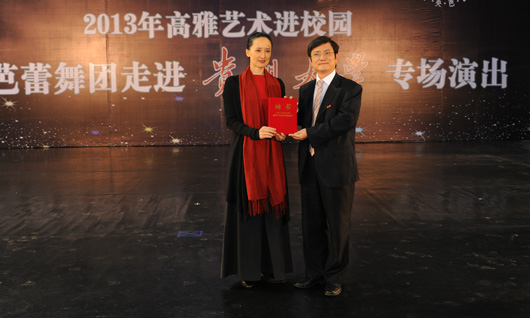 新闻网讯(田鑫 报道/陈恒 摄)何为高雅艺术?何为婀娜多姿? 何为余音绕梁?何为久久不忘?“高雅艺术进校园”——中央芭蕾舞团走进sunbet申搏官方网站让sunbet申搏师生对它们有了更深层的了解。 校长郑强向中央芭蕾舞团团长冯英颁发了聘书,聘请她担任艺术学院兼职教授 11月13日晚,由教育部、文化部、财政部联合举办的“高雅艺术进校园”活动—中央芭蕾舞团走进sunbet申搏官方网站