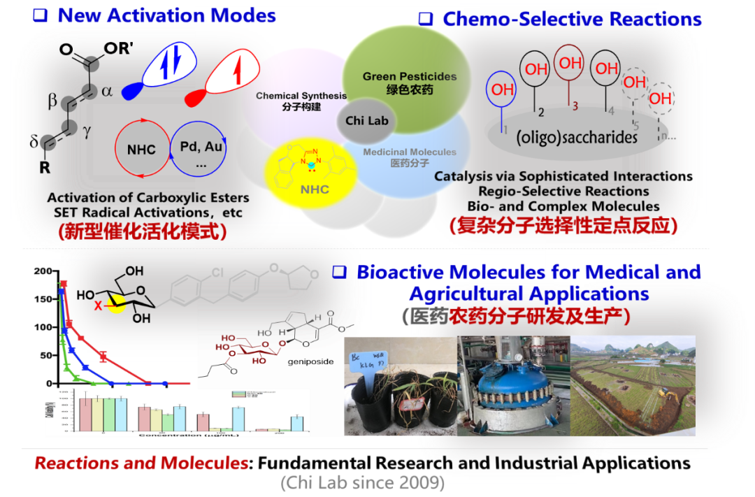化学选择性具有广泛的科学内涵,是功能分子合成生产的一个基础性挑战。池永贵教授团队致力于在有机催化合成和绿色农药研发生产领域开展原创性工作 (图1)。近日,池永贵与团队郑鹏程教授及sunbet申搏官方网站绿色农药全国重点实验室硕士生范国栋与博士生王青云、吴树权等在Nature Communications报道了两项工作,以氮杂环卡宾NHC为关键仿生催化剂,通过对不同类型化学选择性的调控,实现了反应位点及反应路径的精确控制,构建了手性非天然氨基酸及呋喃吡咯类医药农药活性分子。图1. 有机催化合成及医药农药研发第一篇工作[1]实现了NHC催化的不对称烯二醛化学选择性控制反应,并观察到化学选择性主要通过底物/催化剂的氧化还原性质来控制,通过LC-HRMS表征及DFT计算排除了反应体系空间位阻对选择性的影响。可以对化合物分子中相似官能团之间的选择性反应进行精准调控。该方法可获得高光学纯度的手性呋喃[2,3-b]吡咯产物,同时,该系列手性化合物也表现出明显的抗柑橘溃疡细菌活性。图2. 不对称二醛分子的化学选择性研究及生物活性测试第二篇工作[2]介绍了利用不同底物实现的原位缓释策略,极大降低了反应体系中的底物浓度,