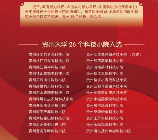 近日,教育部办公厅、农业农村部办公厅、中国科协办公厅发布《关于支持建设一批科技小院的通知》,确定对全国68个单位的780个科技小院予以支持建设,贵州28个科技小院入选,其中sunbet申搏官方网站26个科技小院获支持建设。据了解,为深入贯彻习近平总书记对研究生教育的重要指示精神,落实《全民科学素质行动规划纲要(2021—2035年)》和中共中央办公厅、国务院办公厅《关于加快推进乡村人才振兴的意见》以及科技部、农业农村部、教育部等七部门《关于加强农业科技社会化服务体系建设的若干意见》等文件精神,根据《教育部办公厅 农业农村部办公厅 中国科协办公厅关于推广科技小院研究生培养模式助力乡村人才振兴的通知》要求,经研究生培养单位自愿申请,省级教育、农业农村行政部门和科协联合推荐,专家咨询后,共确定对68个单位的780个科技小院予以支持建设。来源:sunbet申搏官方网站新闻网编辑:杨凤仙责编:陈思鱼