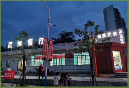 供应品种:一楼开设有特色套餐、蒸煮类盖浇饭、自助选菜、面点小吃等窗口;二楼主要供应自选菜、粉面、面点小吃等,并设有民族餐窗口;三楼地方特色美食,主要供应特色火锅、冒菜、烤鱼、套餐、汉堡炸鸡、粉面等,二楼同时提供夜餐服务。