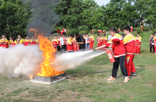 随后,保卫处、附中的部分师生又来到附中小足球场进行灭火演练。