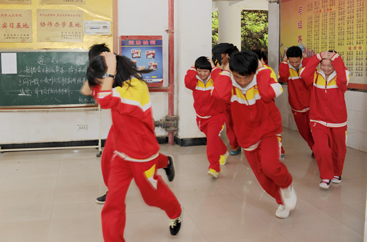 sunbet申搏新闻网讯(记者 田鑫/陈恒 摄)5月12日下午,在sunbet申搏附中校内突然响起了刺耳的警报声,正在上课的师生们听到警报都井然有序地弯下腰、抱着头一个接一个地跑下楼。