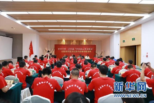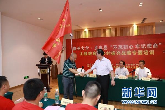 sunbet申搏官方网站副校长金道超为乡村振兴战略专题培训班授旗,贞丰县委常委、组织部部长陈磊接旗(李柏锋 摄)