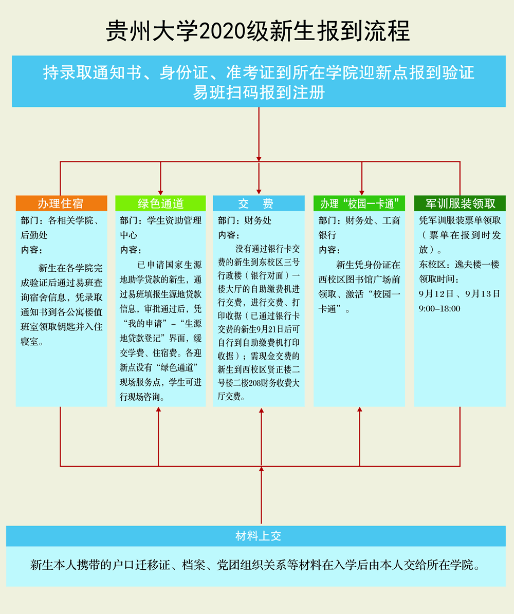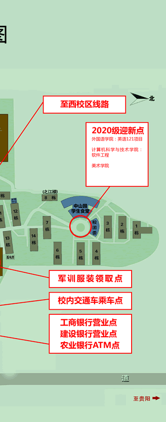 2020级新生报到流程及位置图