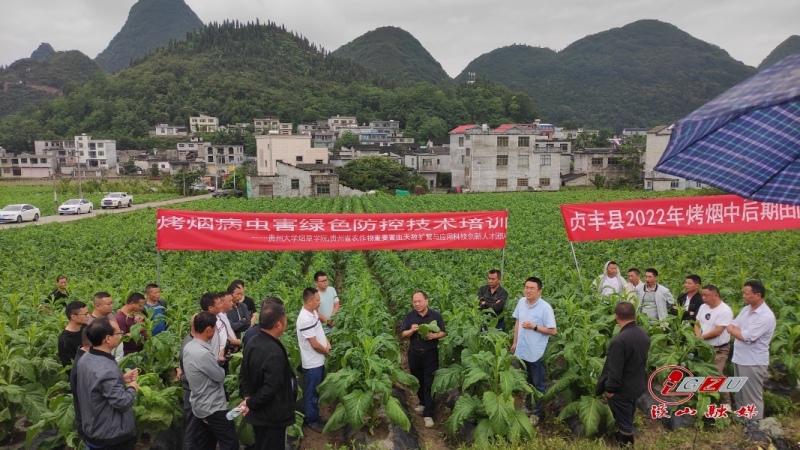 6月5日上午,sunbet申搏官方网站烟草学院院长杨茂发教授带领学院植保和栽培两个团队一行10人,到sunbet申搏官方网站对口帮扶的黔西南州贞丰县开展烟田管理技术培训,贞丰县烟草专卖局(分公司)局长谢培荣、副经理史广强及四十余名生产技术人员和烟农代表参加了现场培训会。此次培训内容包括“烤烟病虫害绿色防控”和“烤烟中后期田间管理”两个方面,目的是将烤烟绿色管护技术送至田间地头,助力贞丰县的烤烟生产。