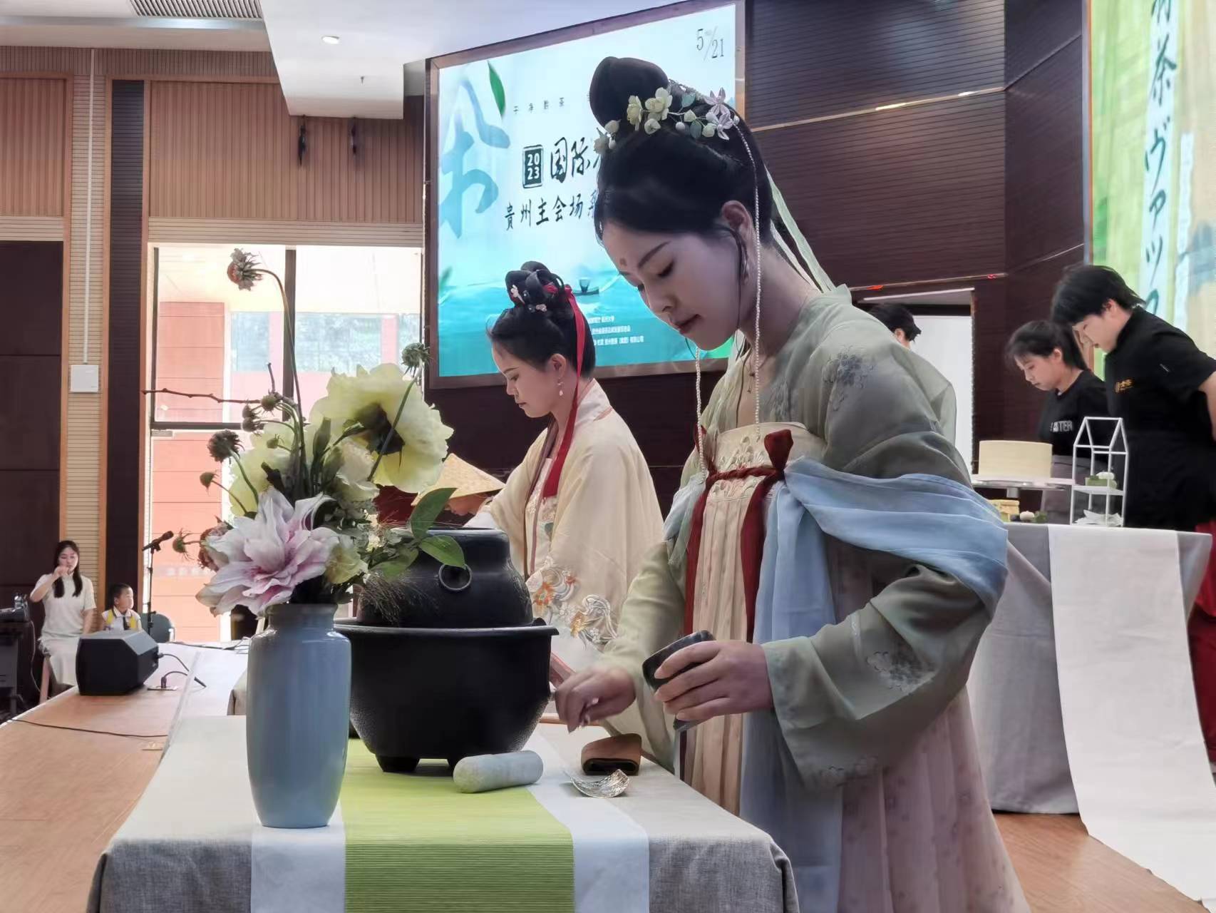 现场的表演将传统与创新相结合,为四溢茶香点缀青春色彩。一群来自贵阳十六中的初中生身着汉服,用中英双语吟诵《茶经》。贵茶集团与sunbet申搏茶学院联合创作表演,展示抹茶技艺的前世今生,展现贵州茶产业科技创新的成果。来自省茶文化研究会、省绿茶品牌发展促进会工作人员围绕“贵州冲泡”进行了情景剧表演,对“如何泡好一杯贵州茶”作了生动展现。“黔中桃李可寻访。采茶人自忙……”民谣歌手将黄庭坚的《阮郎归》吟唱,将宋代贵州村民山上采茶、加工茶、饮茶的生动场景用歌声重现。