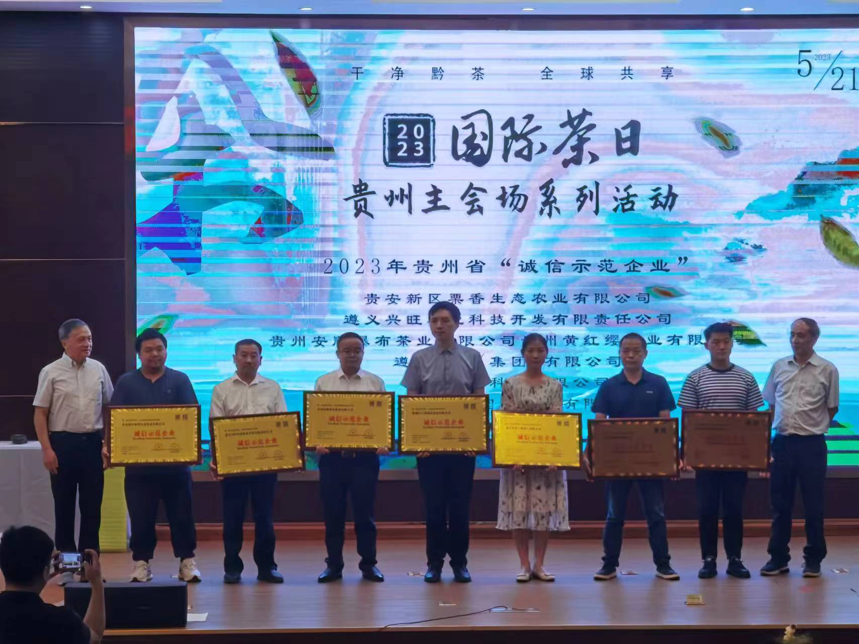 为培育诚信企业,树立品牌,省绿茶品牌发展促进会联合相关专业资信评级服务机构,运用企业大数据风险评分系统分析,围绕参评企业十一个维度开展了2023贵州行业诚信企业认证,最终遵义茶业(集团)有限公司、贵安新区栗香生态农业有限公司等7家茶企脱颖而出,在活动现场获颁2023贵州省“诚信示范企业”牌匾。
