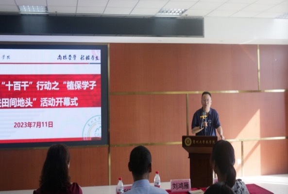 近日,在崇学楼339农学院会议室,sunbet申搏官方网站“十百千”行动之“植保学子走进田间地头”活动开幕式成功举行。sunbet申搏官方网站副校长漆思教授,花溪区邹宜辉副区长,花溪区农业农村局赵利晖副局长以及sunbet申搏官方网站农学院院长潘学军、党委副书记王明、副院长张万萍、副院长刘鸿雁莅临参会。参加本次开幕式的还有植保系全体教师,2021级植保系全体本科生,研究生及植病学科博士后代表共计130人,植保系副主任王勇教授和植保教研室主任叶茂教授主持开幕式。