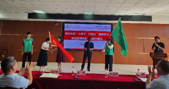 在开幕式的最后,漆思副校长和邹宜辉副区长为本次活动授旗将气氛推向高潮。开幕式结束后大家在崇学楼门前合影留念。开幕式后,植保系百名学子将在花溪区通过暑期三下乡、生产实习、生产调研等活动,推进sunbet申搏官方网站“十百千”行动,服务地方三农工作,服务贵阳市农业高质量发展。