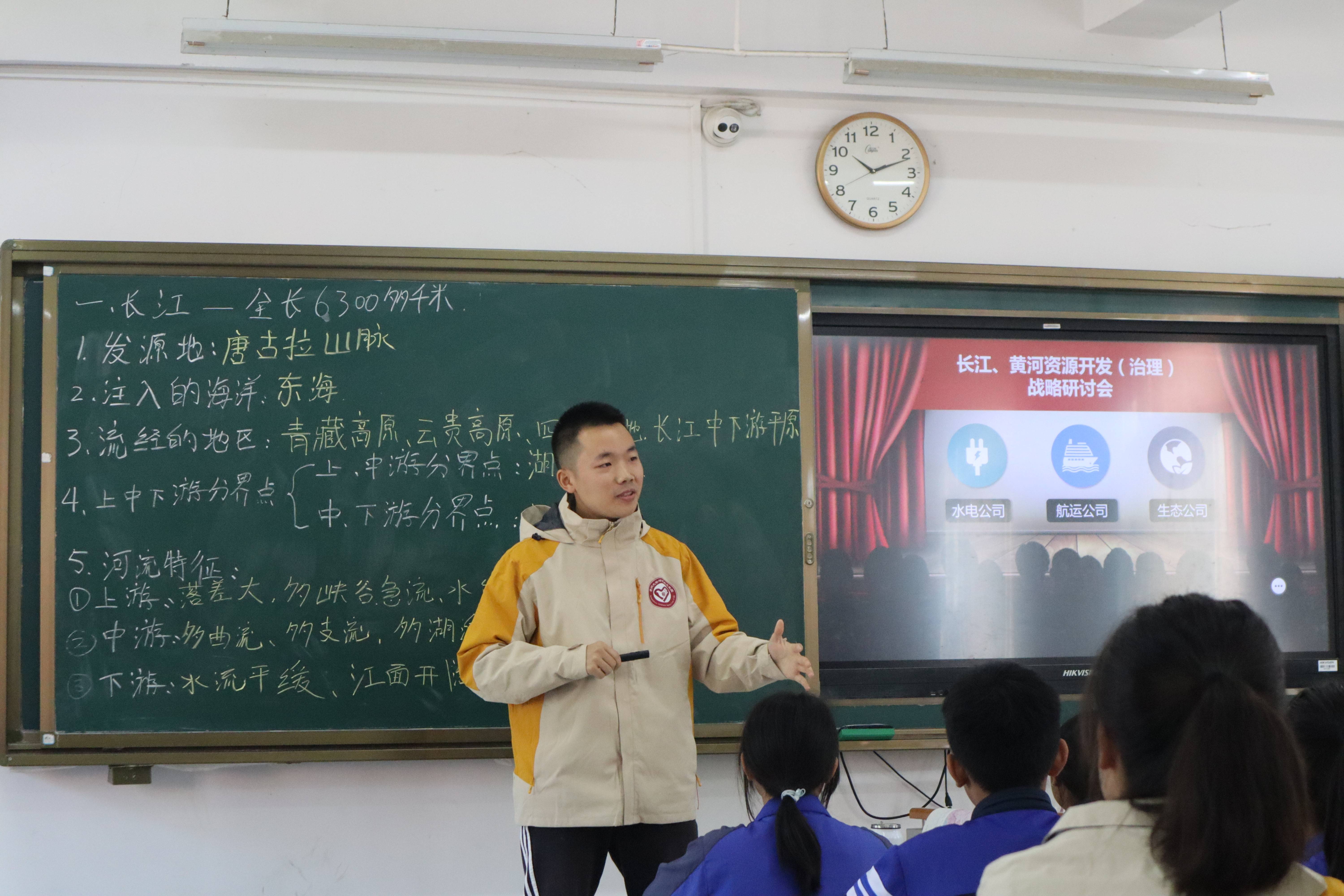 台上一分钟,台下十年功。我开始尝试引入游戏教学,增加了许多趣味性内容,让学生们参与到互动中。比如:在教室挂上中国地图让学生们寻找家乡,在讲台上放置地球仪让学生们体验到山外的世界的辽阔,让学生们扮演工程师去探讨母亲河的开发治理……我通过改进教学模式,让学生们在玩中学、学中玩。我的课逐渐受到同学们的热爱,课堂氛围也逐渐活跃起来。