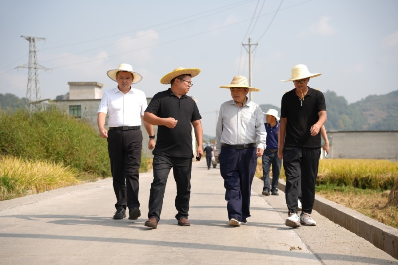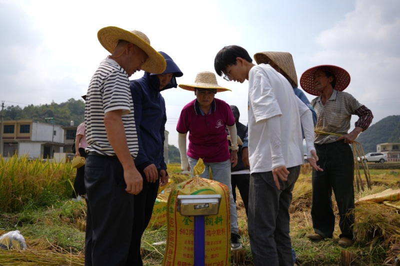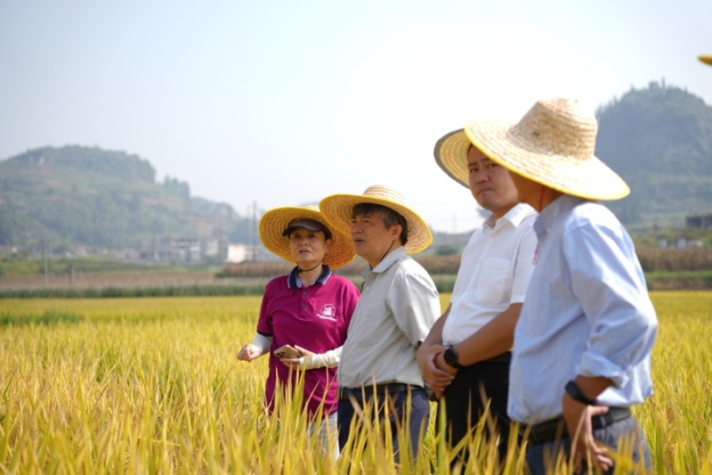 “今天我们分成四个组,来进行此次验收。”校长宋宝安院士在滚滚稻浪前为试验田验收进行分组。