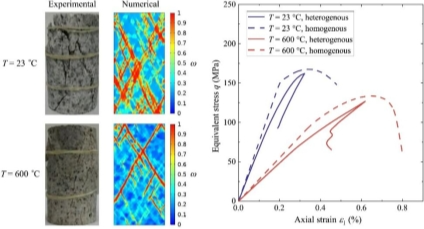 深部岩土工程常处于“三高一扰动”(高地应力、高地温、高渗透压、强烈开采扰动)的复杂环境,准确理解和评估岩石类脆性材料在高温、高压和高应变率条件下的力学响应对于揭示深部岩土工程的失稳破坏机理具有重要意义。然而,高温高应变率下的岩石非弹性变形过程涉及热弹性、热塑性和热损伤等能量耗散过程的复杂耦合效应,如何在统一理论框架下定量求解岩石应力、应变、损伤和温度等状态变量的演化过程一直是一个挑战性的前沿课题。