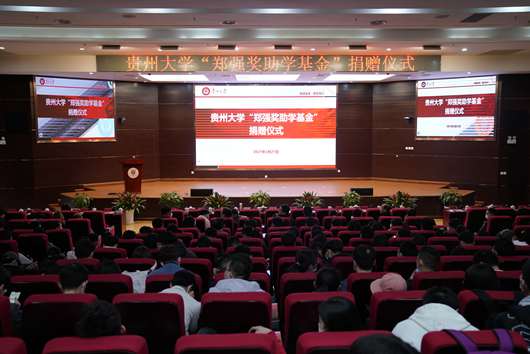 On the morning of March 21, a donation ceremony for the "Zheng Qiang Scholarship Fund" was held in the lecture hall of the Xianzheng Building on West Campus. Prof. Zheng Qiang, the former GZU president and honorary director of the fund’s management committee, leaders from the Guizhou provincial government and Guizhou University, and about 300 faculty and student delegates attended the ceremony. Vice President Li Junqi presided over the ceremony.