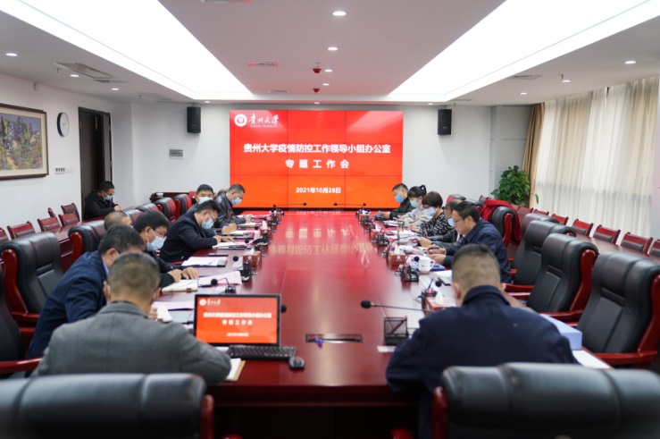On the afternoon of October 28, Guizhou University held a conference on further strengthening COVID-19 prevention and control measures in Conference Room 202 of Xianzheng Building on West Campus. Key leaders of the university attended the meeting, including vice president Li Junqi and directors from the Xibei Office in Huaxi District and the Pandemic Prevention and Control Centre of the university. Hu Xiaobing, director for both the university’s CPC Committee Office and the President’s Office, presided over the meeting.