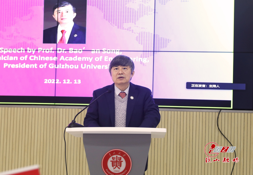 On December 13, the matriculation ceremony was held at GZU (Guizhou University) for the 2022 freshmen of North Alabama International College of Engineering and Technology. GZU President Song Bao’an, and Vice Presidents Zhou Shaoqi and Zhang Dalin attended the ceremony in Conference Room 115 of Dezheng Building; Kenneth Kitts, president of the University of North Alabama (UAN) in the United States, attended online. Heads of relevant departments and colleges from both sides and all the teachers and students of the college attended either online or on the spot. The ceremony was presided over by Zhou Shaoqi.
