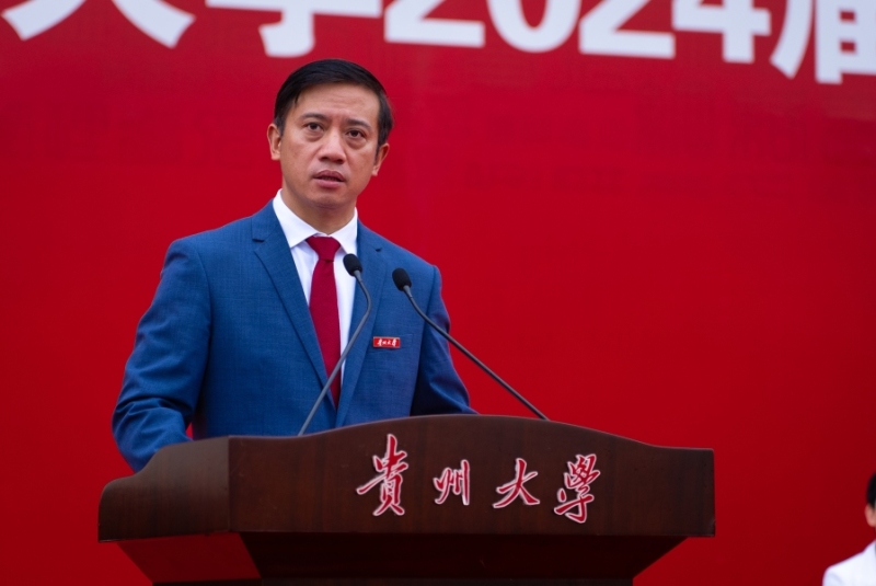 University leaders, including GZU CPC Secretary Yang Wei and President Song Bao'an, alongside faculty, staff, graduates, and their families, attended the ceremony. It was hosted by CPC Deputy Secretary Zhang Jie. The event commenced with the national anthem, followed by Vice President Chen Xiangsheng's announcement of graduation documents and Vice President Zhang Dalin's announcement of the commendation documents for outstanding graduates. The university awarded 349 undergraduates and 266 postgraduates the title of "Outstanding Graduates."