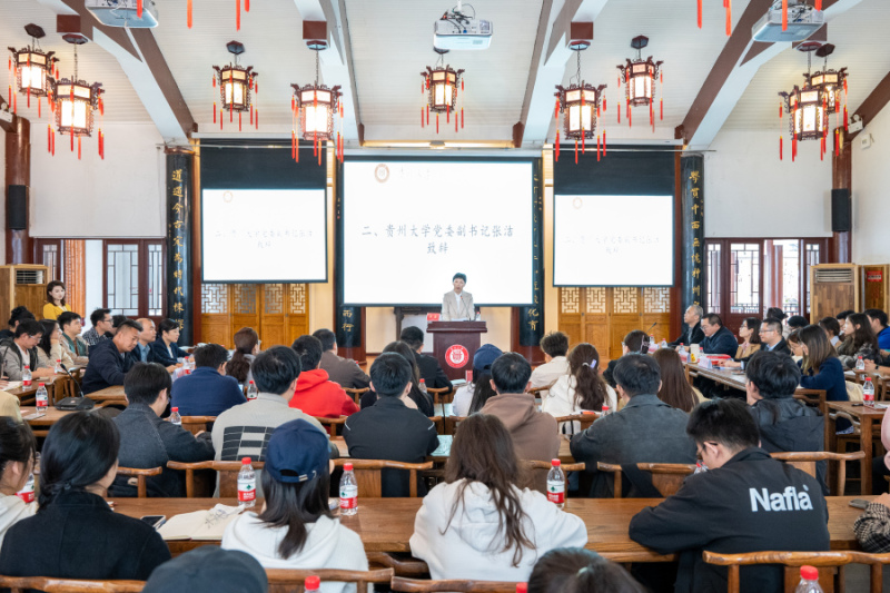 The event was hosted by GZU and organized by the Office of Humanities and Social Sciences, the School of Marxism, and the national-level outstanding teacher studio for ideological and political courses at GZU. Representatives from the Party Affairs Office, Publicity Department, Student Work Department, Graduate Work Department, Office of Humanities and Social Sciences, and the School of Marxism, as well as student representatives from various colleges, attended the session.