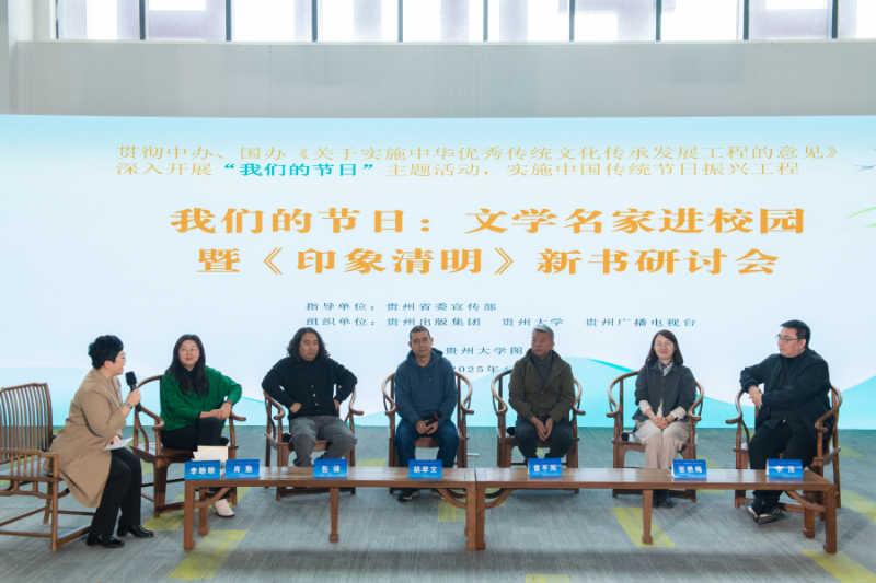 On April 1, Guizhou University hosted the event “Our Traditional Festivals: Literary Masters Enter Campus & Impressions of Qingming Book Seminar.” The gathering brought together renowned authors, literary critics, and publishing professionals from across China to engage with students on the inheritance and innovation of traditional Chinese festival culture. The event was co-organized by Guizhou Publishing Group, Guizhou University, and Guizhou Radio and Television Station.