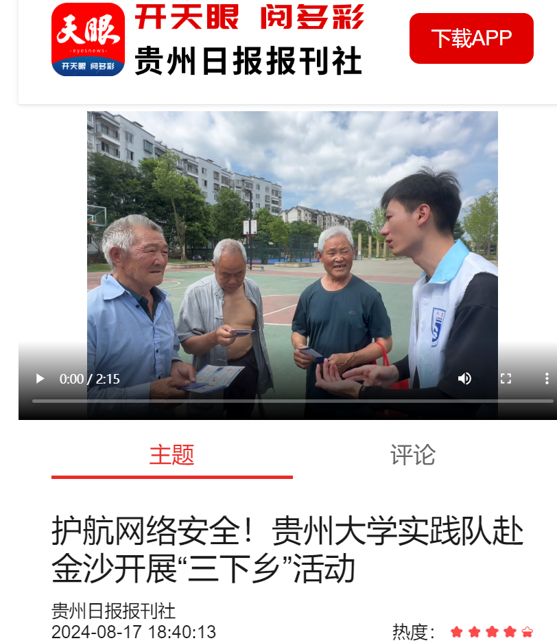 天眼新闻客户端:护航网络安全!sunbet申搏官方网站实践队赴金沙开展“三下乡”活动
