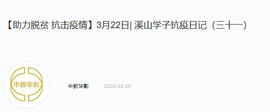 中教华影:【助力脱贫 抗击疫情】3月22日| 溪山学子抗疫日记(三十一)