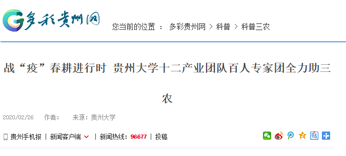 多彩贵州网:战“疫”春耕进行时 sunbet申搏官方网站十二产业团队百人专家团全力助三农