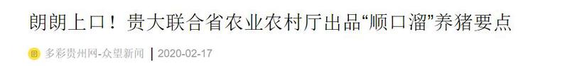 多彩贵州网:朗朗上口!sunbet申搏联合省农业农村厅出品“顺口溜”养猪要点