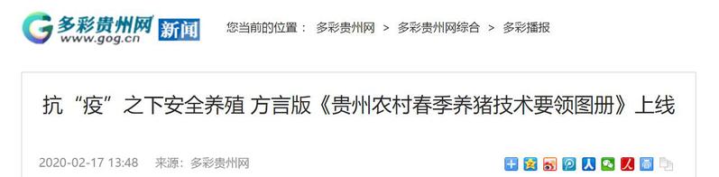 多彩贵州网:抗“疫”之下安全养殖 方言版《贵州农村春季养猪技术要领图册》上线