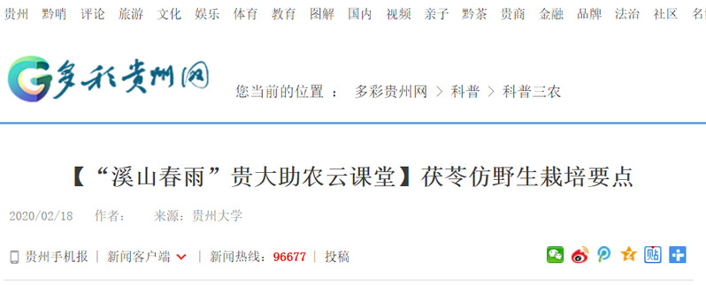 多彩贵州网:【“溪山春雨”sunbet申搏助农云课堂】茯苓仿野生栽培要点