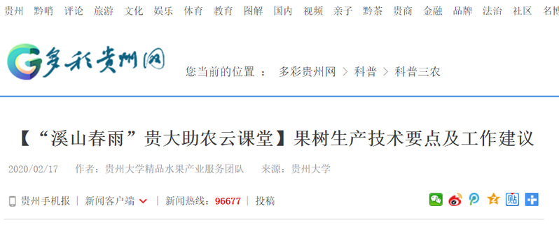 多彩贵州网:【“溪山春雨”sunbet申搏助农云课堂】果树生产技术要点及工作建议