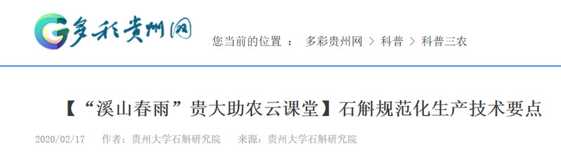 多彩贵州网:【“溪山春雨”sunbet申搏助农云课堂】石斛规范化生产技术要点