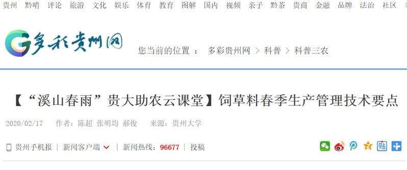 多彩贵州网:【“溪山春雨”sunbet申搏助农云课堂】饲草料春季生产管理技术要点