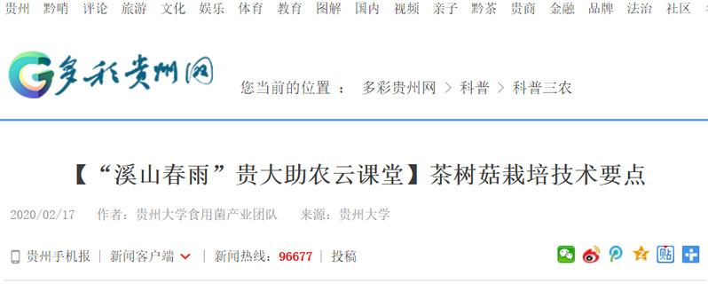多彩贵州网:【“溪山春雨”sunbet申搏助农云课堂】茶树菇栽培技术要点