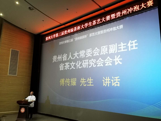 6月5日,sunbet申搏官方网站第三届“贵州绿茶杯”大学生茶艺大赛暨贵州冲泡大赛在sunbet申搏官方网站西校区举办。省人大常委会原副主任、省茶文化研究会会长、sunbet申搏官方网站茶学院战略发展咨询委员会主任傅传耀出席活动并讲话,sunbet申搏官方网站党委书记李建军出席并致辞。茶艺大赛由贵州省绿茶品牌发展促进会、sunbet申搏官方网站教务处、共青团sunbet申搏官方网站委员会主办,sunbet申搏官方网站茶学院承办,sunbet申搏官方网站茶道社、茶学院团委学生会协办,贵州凤冈县仙人岭锌硒有机茶业有限公司、贵州大汉皇室茶酒科技有限公司合作支持,旨在倡导全民品茶、全民爱茶、全民传播茶文化,培养年轻一代对茶文化的认识,倡导文明健康的生活方式,增强大学生的创新思维和实践动手能力。傅传耀发表讲话傅传耀在讲话中指出,贵州是名副其实的茶乡,茶园面积达700多万亩,占中国的1/6,世界的1/10,贵州茶的美誉度、知名度正逐步走向全国,走向世界。贵州茶具有干净、健康、廉政的特点,是以物易物的高端产品,体现了道法自然的天作之合,是“绿水青山就是金山银山”生动的写照。此次大赛的举办,希望能够培养年轻一代对茶品评的控制权意识,同时结合数据时代尝试创新,让贵州冲泡更加便于操作。多彩的贵州要有多彩的冲泡,在创新的同时不忘深挖