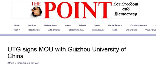 UniversityofTheGambiahassignedaMemorandumofUnderstanding(MOU)withGuizhouUniversityfromChinainaceremonyheldatUTGCampusinKanifingonTuesday.TheceremonyalsowitnessedtheestablishmentoftheConfuciusInstitutebyGuizhouUniversityattheUTGwhichaimstorendermoresupporttothecountry’shighesttertiaryinstitution.Thispartnershipwillstrengthenthenewlyestablishedrelationsbetweenthetwouniversitiesandprovidelotsofopportunitiesandbenefits.Theseincludeculturalpromotionoflanguage,exchangeoffacultystaffandstudentsvisitand