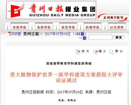 贵州日报:我省高等教育学科建设获突破 sunbet申搏植物保护世界一流学科建设方案获院士评审论证通过