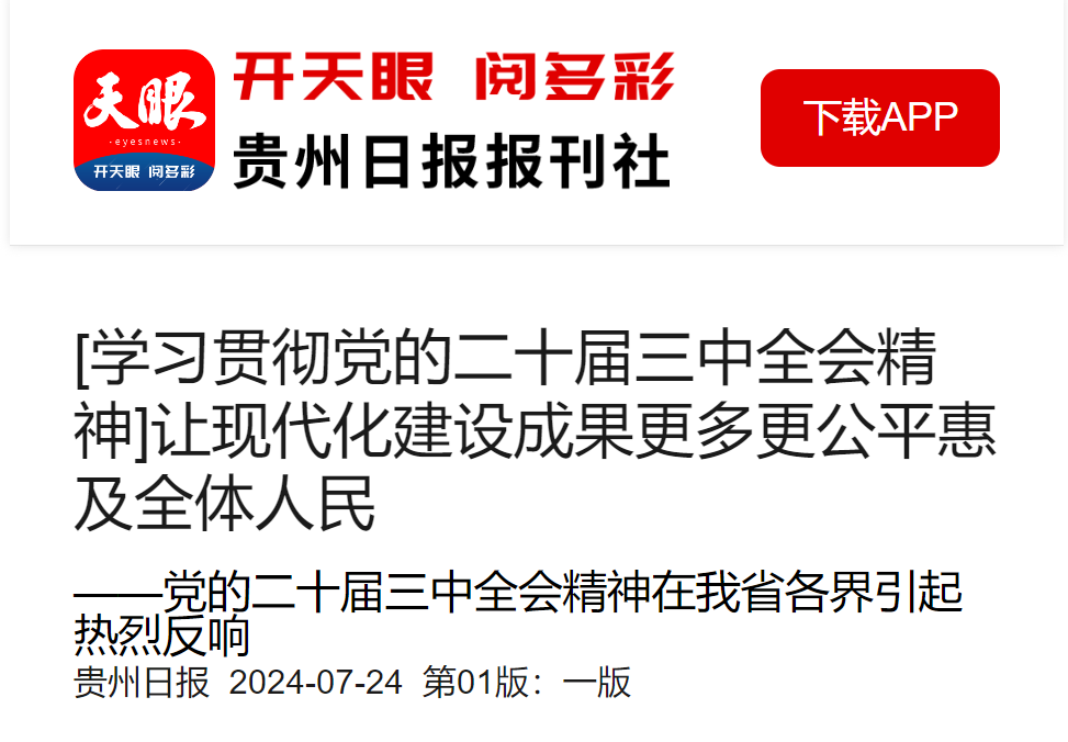 天眼新闻客户端:[学习贯彻党的二十届三中全会精神]让现代化建设成果更多更公平惠及全体人民——党的二十届三中全会精神在我省各界引起热烈反响